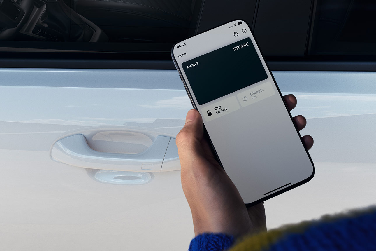 Mit dem Kia Digital Key kannst du deinen Stonic ganz einfach per kompatiblem Smartphone ver- und entriegeln – und sogar starten. Kein klassischer Schlüssel nötig. Teile den digitalen Zugang mit Familie oder Freunden und genieße den Komfort, deinen Schlüssel sicher und jederzeit griffbereit auf dem Handy zu haben.