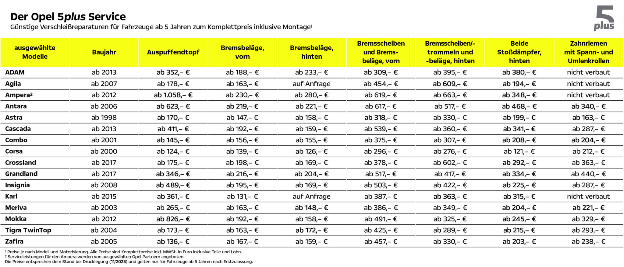 3 Unverbindliche Preisempfehlung der Opel Automobile GmbH für einen Komplettpreis inklusive Teile und Lohn. Das Angebot ist gültig vom 01.12.2025 bis 28.02.2026 für den Astra J Benziner 1.6 und 1.8 ab fünf Jahren nach Erstzulassung – du bezieht sich auf die Verwendung von Opel Original Teilen by Mopar®.